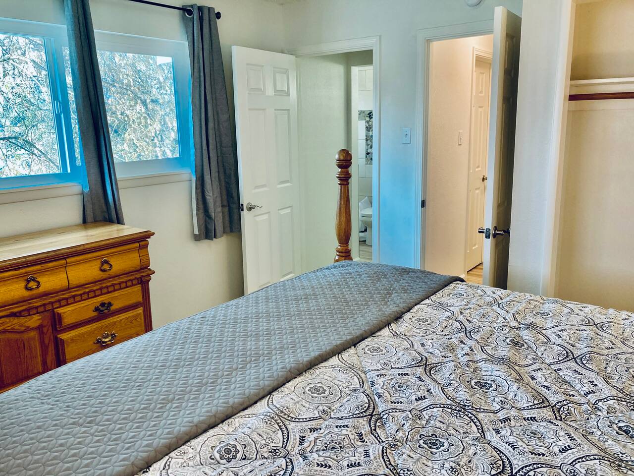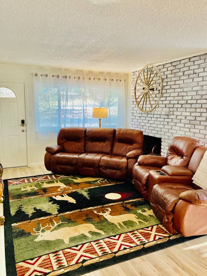 This newly remodeled 3 Bedroom 2 Bath is the perfect getaway for you, your family and friends. With updated appliances in the kitchen and new furniture through the house. Located in the town of Oakhurst and just 30 minutes from the South Entrance of Yosemite National Park. This house features a King Suite, 2 rooms with Queen beds, a sunroom/game room, two bathrooms, WIFI, and two smart TVs. This home is located in a quite mountain area perfect for families.