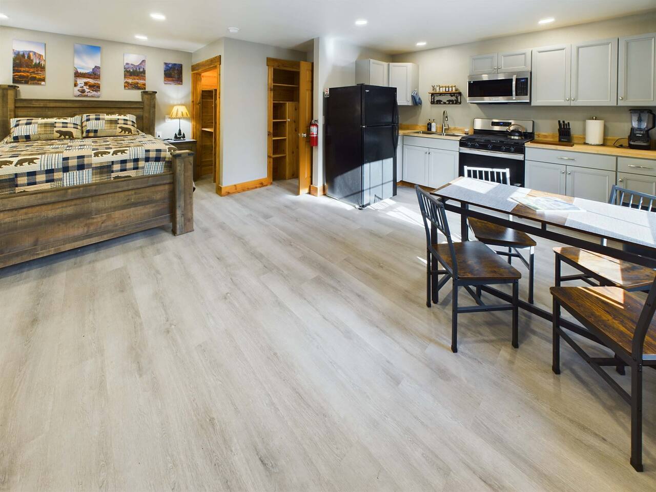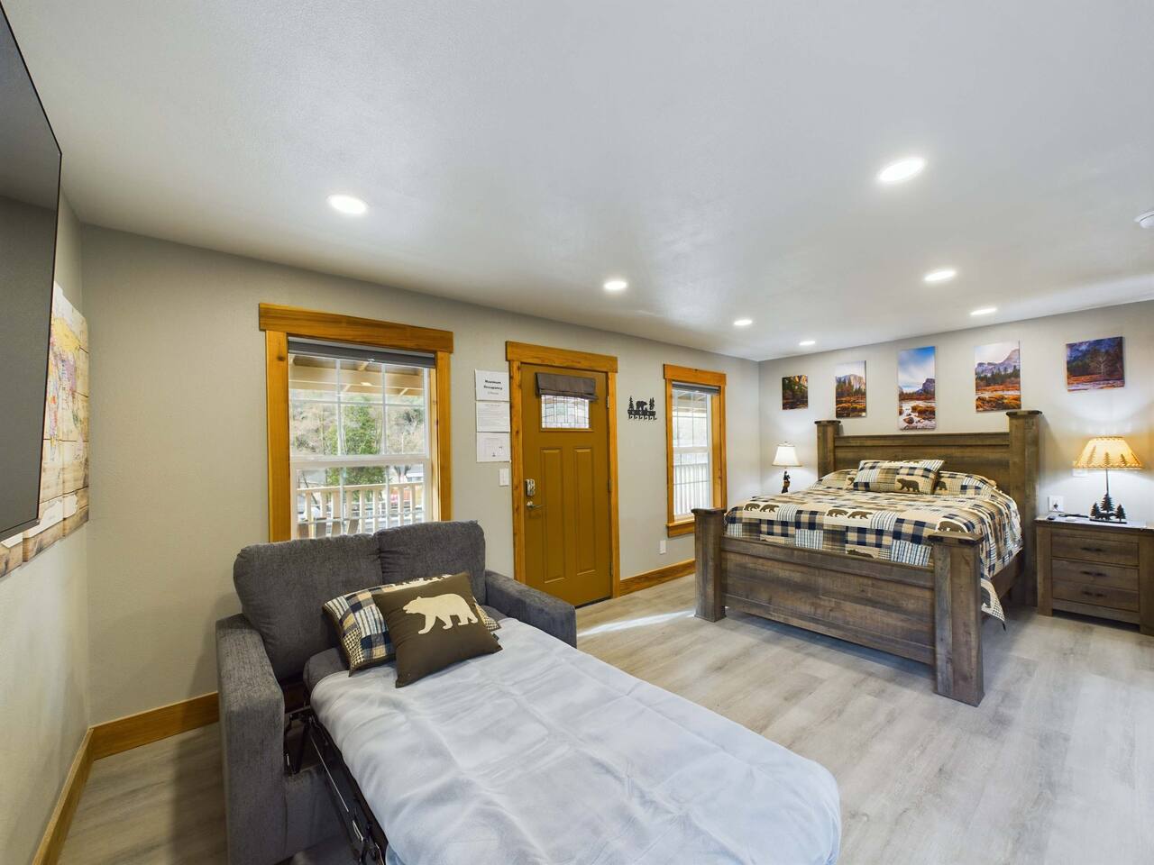 Escape to this cozy, newly remodeled studio in the heart of downtown Mariposa. Just 45 minutes from Yosemite National Park, it’s the perfect base for your next adventure. The space comfortably sleeps up to 3 guests, featuring a queen bed and a single pullout sofa bed. Enjoy modern amenities, including a large TV, high-speed Starlink Wi-Fi, and efficient mini-split AC/heating to keep you comfortable year-round. The fully stocked kitchen has everything you need to prepare meals after a day of exp